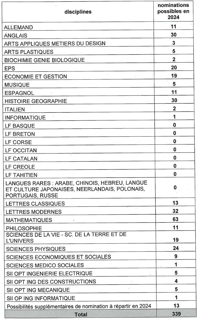pour les professeurs certifiés (dont documentalistes), PLP, professeurs d’EPS