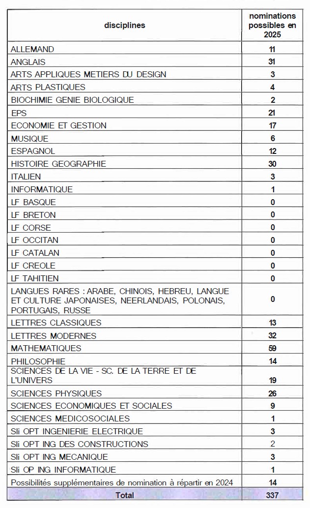 Les dispositions prévues par les lignes directrices de gestion ministérielles du 16 décembre 2024 parues au Bulletin officiel spécial n° 7 du 19 décembre 2024, relatives aux promotions et à la valorisation des parcours professionnels des personnels, précisent, à propos de la promotion à l’agrégation par voie de liste d’aptitude, que les agrégés exercent principalement dans les classes de lycée, les classes préparatoires aux grandes écoles et les établissements d’enseignement supérieur.