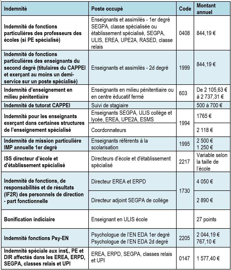 INDEMNITÉS ET PRIMES EN ENSEIGNEMENT SPÉCIALISÉ