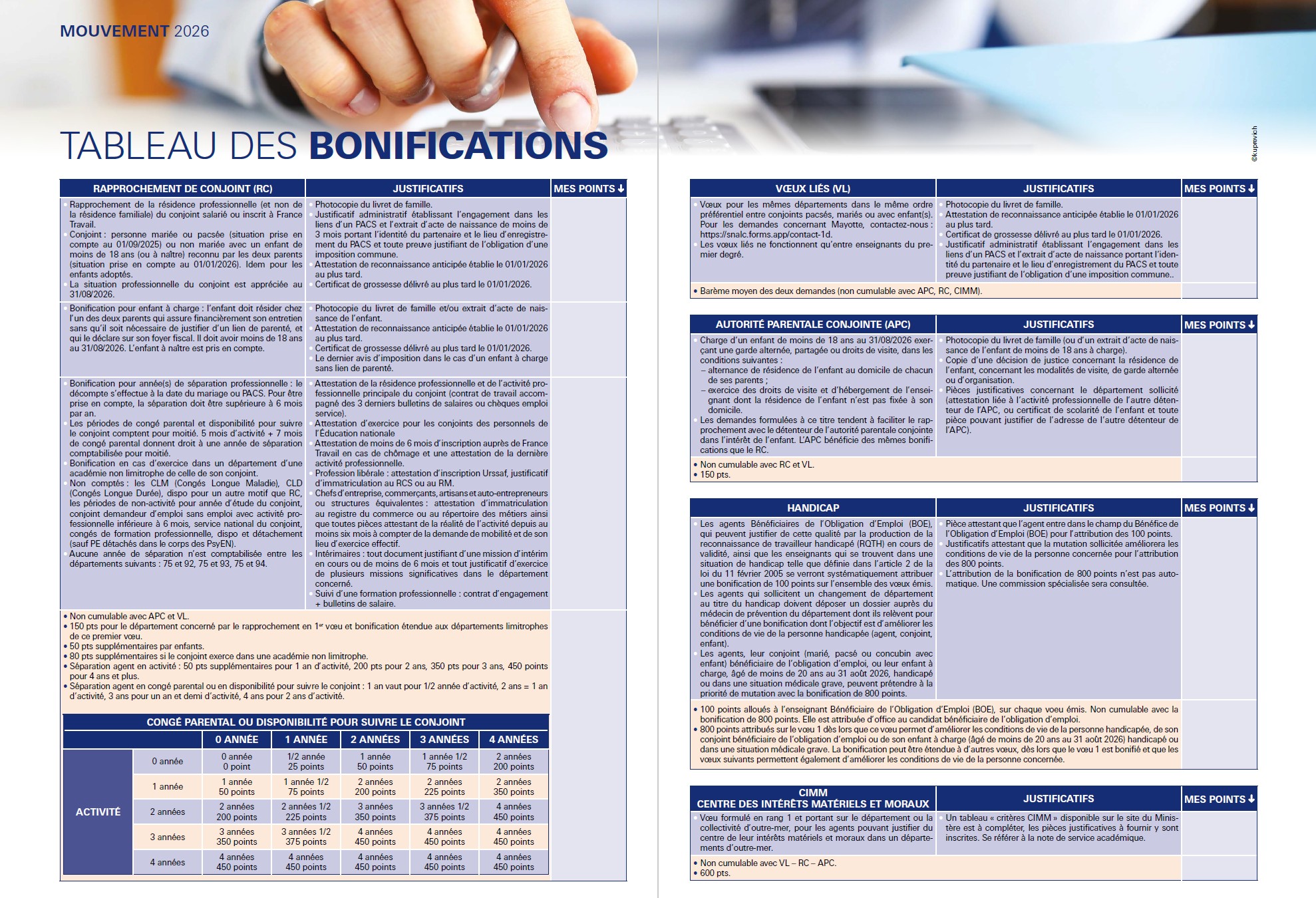 - Anticiper pour faire valoir ses droits : en cas de situation de handicap, il faut contacter sans tarder le médecin de prévention de la DSDEN pour pouvoir prétendre à une éventuelle bonification de 800 points.