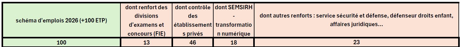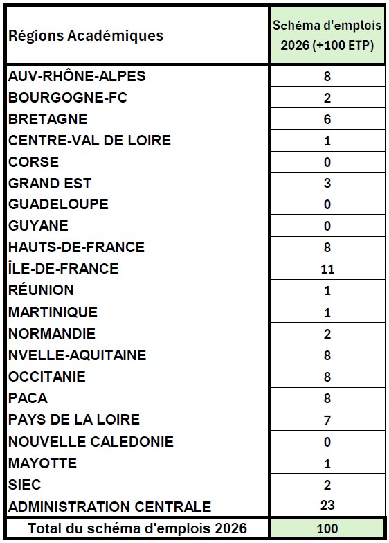 Ce document précise la répartition de ces emplois par régions académiques et administration centrale et grands domaines de renfort.